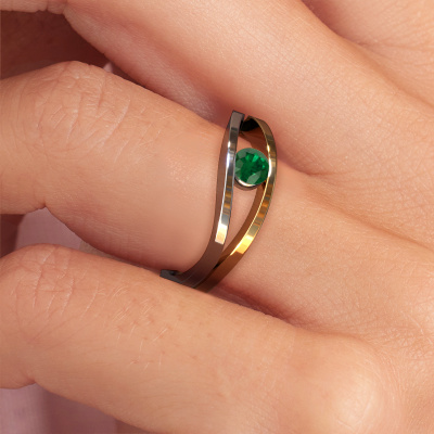 This ring called Sigrid 1 is made of 14 Carat white gold and is set with emerald. Are you in the market for a unique white gold ring with a modern twist? Then this ring might suit you. Simply customize to your or her liking. It suits the contemporary modern woman. This twist ring is set with beautiful emerald. This has been carefully selected. Because your ring must be adorned with nothing but the most stunning gemstone. Our expert goldsmith will create your ring in our own studio, where the emerald will be set with great care. The ring will then be polished to perfection to create a stunning ring. By using our modern techniques, we can design and customize the finest quality jewels with the utmost care for you. Our rings are always priced 30 percent lower than other jewelers. We make rings to order, so we don't have to maintain a large stock. If you have a certain budget, we are more than happy to advice you accordingly.Our team of talented, passionate designers add new ring designs to our online collection daily. Our objective in doing so, is to be able to offer you a wide variety of jewels. Please feel free to request a quote if you have specific wishes for your ring. We guarantee to make you an offer you can't refuse.To make it easier for you, we offer a 30 day return policy. Check our terms and conditions.