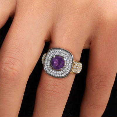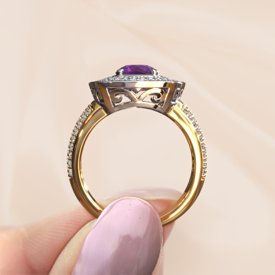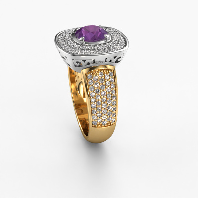 This exclusive white gold Eliana ring is a true work of art! This ring is made of 14 Carat white gold and is set with 6 mm round amethyst. The smallest ornaments are crafted by our goldsmith with a lot of patience and great passion. In order to create this ring with great precision, this craft requires a keen eye and a skillful hand. A challenge which ignites a fire in our expert goldsmiths. The exquisite amethysten are set in a way that their unique qualities are strengthened. This gives the ring an even more glamorous appearance. The ring is unique by itself though, because of the natural birthstones we selected especially for this Eliana ring. And by choosing the precious metal yourself, you create a unique ring. As soon as you finished designing your Eliana ring with our online tool, our goldsmiths will start their creative process of making your ring. This will be done with passion and care, according ancient crafting. On top of that, our jewels are made of eco-friendly materials. Simply customize online with our online tool, if you want any changes made. If you want specific changes made to your Eliana ring, that are unavailable in our online tool, please feel free to contact our expert designers.By using a combination of the latest modern techniques, combined with ancient crafting, we can make all our rings in our own studio. Each jewel is made to order. This is advantageous because we can offer you a price you won't find anywhere else.To make it easier for you, we offer a 30 day return policy. Check our terms and conditions.