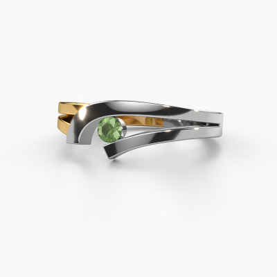 This ring is called Yentl. It is made of 14 Carat white gold and is set with 3 mm tourmaline green. Are you looking for a unique white gold ring with a modern appearance? Then this is the ring for you. Simply customize to your or her liking. Perfect for a modern, contemporary woman! This fantasy ring is adorned with stunning tourmaline green. It was carefully selected because your ring must be adorned with nothing but the most beautiful gemstones. Our expert goldsmith will create your ring in our own studio, where the tourmaline green will be set with great care. The ring will then be polished to perfection to create a beautiful ring. By using our modern techniques, we can design and customize the finest quality jewels with the utmost care for you. Our rings are always priced 30 percent lower than other jewelers. We make rings to order, so we don't have to maintain a large stock. If you have a certain budget, we are more than happy to advice you accordingly.Our team of talented, passionate designers add new ring designs to our online collection daily. Our objective in doing so, is to be able to offer you a wide variety of jewels. Please feel free to request a quote if you have specific wishes for your ring. We guarantee to make you an offer you can't refuse.To make it easier for you, we offer a 30 day return policy. Check our terms and conditions.
