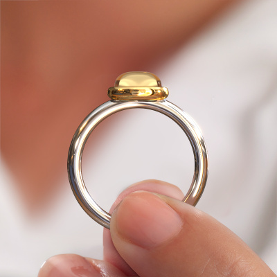 In this photo the white gold Blossom OVL ring is set with a cabochon citrin. Cabochon means a citrin is shaped first, not faceted, into a specific shape, such as a drop, heart or oval cabochon. Subsequently, it is polished until the gemstone has a orb shaped surface. A cabochon gemstone is a stunning, classy eye-catcher that matches perfectly with a contemporary as well as a vintage style. Our expert goldsmiths shape the elegant ring to perfection which makes it unique. The cabochon citrin is set so its unique qualities are strengthened. Customize your own elegantBlossom OVL ring, which will then be created by our goldsmiths with great passion. Do you prefer a different option than is shown here in the white gold Blossom OVL ring? Then our online tools offers various options. Feel free to ask us for help if you are unable to succeed. We are happy to answer your questions!By using a combination of the latest modern techniques, combined with ancient crafting, we can make all our rings in our own studio. Each jewel is made to order. This is advantageous because we can offer you a price you won't find anywhere else.To make it easier for you, we offer a 30 day return policy. Check our terms and conditions.