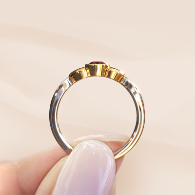 This symbolic white gold Lorrine ring is set with garnet. For some, a ring is nothing more than a beautiful fashion item but they can become a meaningful keepsake. A ring such as this can be worn daily and it matches numerous different styles. Designing your own unique ring, makes it even more special. You are reminded of its uniqueness every time you look at it. Perhaps it reminds you of someone special. It might bring back memories. Unforgettable moments, represented in one ring. The beauty of it all is that the used precious metals and gemstones will last a lifetime. A lifetime of memories deserves nothing less! The best part of this symbolic ring is that you can customize it to your own liking. Your style, your choice, your ring. On top of that, your fantasy white gold ring will be made by hand with eco-friendly materials! Please feel free to easily customize the ring, using our online tool.After receiving your order, our goldsmiths will start the creative process of making your Lorrine ring. We don't keep stock. This is advantageous because these costs will not be passed on to you. Therefore, we can offer jewelry at exceptionally low prices.To make it easier for you, we offer a 30 day return policy. Check our terms and conditions.