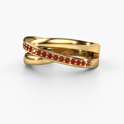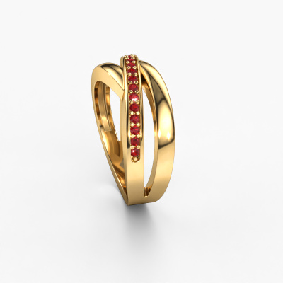 This ring called Colette is made of 14 Carat gold and is set with ruby. Are you in the market for a unique gold ring with a modern twist? Then this ring might suit you. Simply customize to your or her liking. It suits the contemporary modern woman. This wide ring is set with beautiful ruby. This has been carefully selected. Because your ring must be adorned with nothing but the most stunning gemstone. Our expert goldsmith will create your ring in our own studio, where the ruby will be set with great care. The ring will then be polished to perfection to create a stunning ring. Are you on a budget? Please feel free to contact us, so we can go discuss your options. We offer our rings at guaranteed best price, because we make them to order. You won't find such a price anywhere else!