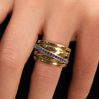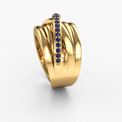 How would you describe your own style? Are you looking for something uniquely different? This wide gold Clair 1 ring is astonishing! Simply customize to your or her own liking. This ring is set with sapphire. These sapphire have been carefully selected because your ring must be adorned with nothing but the most beautiful gemstone. Wouldn't you agree? Our expert goldsmith will create your ring in our own crafting studios, where the sapphire will be set with care. The ring will then be polished to perfection to give it that extra sparkle. It's a perfect ring for a woman of excellent taste!The best part of this wide ring is that you can customize it to your own liking. Your style, your choice, your ring. On top of that, your fantasy gold ring will be made by hand with eco-friendly materials! Please feel free to easily customize the ring, using our online tool.By using a combination of the latest modern techniques, combined with ancient crafting, we can make all our rings in our own studio. Each jewel is made to order. This is advantageous because we can offer you a price you won't find anywhere else.To make it easier for you, we offer a 30 day return policy. Check our terms and conditions.