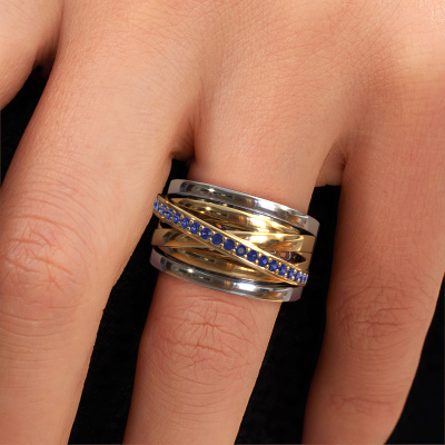 How would you describe your own style? Are you looking for something uniquely different? This wide white gold Clair 1 ring is astonishing! Simply customize to your or her own liking. This ring is set with sapphire. These sapphire have been carefully selected because your ring must be adorned with nothing but the most beautiful gemstone. Wouldn't you agree? Our expert goldsmith will create your ring in our own crafting studios, where the sapphire will be set with care. The ring will then be polished to perfection to give it that extra sparkle. It's a perfect ring for a woman of excellent taste!The best part of this wide ring is that you can customize it to your own liking. Your style, your choice, your ring. On top of that, your fantasy white gold ring will be made by hand with eco-friendly materials! Please feel free to easily customize the ring, using our online tool.By using a combination of the latest modern techniques, combined with ancient crafting, we can make all our rings in our own studio. Each jewel is made to order. This is advantageous because we can offer you a price you won't find anywhere else.To make it easier for you, we offer a 30 day return policy. Check our terms and conditions.