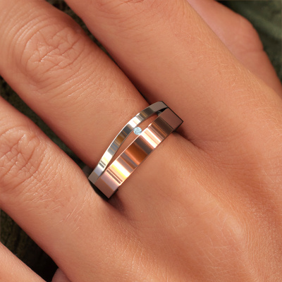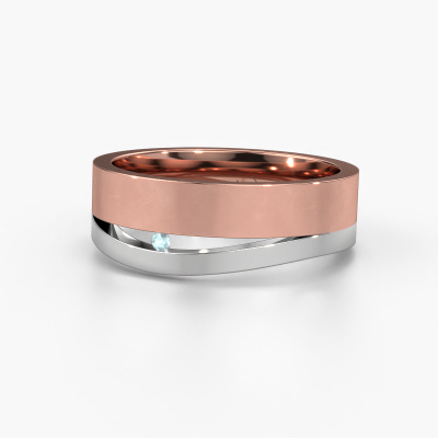 A unique two-tone rose gold ladies wedding ring, designed by you, and then artfully crafted by our goldsmith in our own artisan studio! A beautiful symbol, reflecting your love, which you carry with you for a lifetime! Each ring we offer is artfully forged by hand in our own crafting studio. This makes it possible for us to create you a ring which is customized to your liking, completely shiny your style. This modern WH6000L16AP wedding ring is set with aquamarine, is ±0.24 in (6 mm) wide and has a shiny finish. Simply customize your gemstones and colors with our online tool. Our jewel designers will make a 3D drawing of your design, so you can see the result. Our goldsmiths will subsequently make your wedding ring by hand, according ancient craftsmanship. Our goal is to make the wedding ring you have in mind. A unique wedding ring to match your style completely!Do you have special preferences regarding your wedding ring? For instance, a smaller or a wider band? Or perhaps a shiny or a matte ring? There are numerous variations possible. You can always discuss the possibilities with our jewelry designers. If you have certain wedding rings in mind, our designers will gladly help by drawing the rings of your dreams. Be sure to contact us!By combining our modern techniques with ancient crafting, we can design and customize the finest quality jewels with the utmost care for you at the best price. Our wedding rings are always priced 30% lower than those of other jewelers. We make wedding rings to order so we don't have to maintain a large stock.To make it easier for you, we offer a 30 day return policy. Check our terms and conditions.