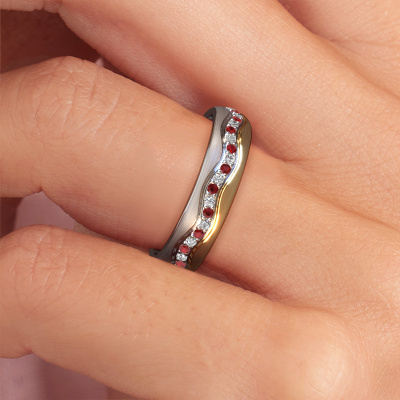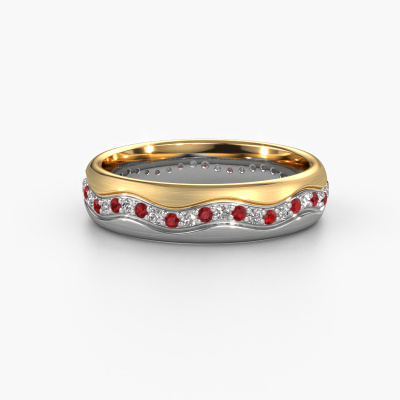 An extraordinary eternity ladies wedding ring! As unique as your relationship! No two people are alike and that is why you want a unique wedding ring. This modern WH0803L35BM wedding ring is made by our jewel designers and crafted by hand by our goldsmith. In that process, We use pure craftsmanship combined with the latest techniques to achieve the best result. Our goldsmith strives for absolute perfection. A unique, handmade wedding ring, made to memorialize your big day! This modern WH0803L35BM wedding ring is set with ruby, is ±0.20 in (5 mm) wide and has a shiny finish. You can choose the combination of precious metals of your preference in our online tool. Anything goes! It is wise to browse through the characteristics of each different precious metal. For example, gold and silver are softer metals. Carat is determined by the amount of added extra metals. If the goldsmith doesn't add a lot, carat is higher and the wedding ring will be softer. If he adds more metals, the jewel has a lower amount of carat. A softer precious metal can still be used for your modern wedding ring! If you prefer a precious metal which will last a lifetime, we recommend platinum. This is the most solid and durable metal our goldsmith uses.This wedding ring can also serve as a source of inspiration. Would you like the ring to have a matte or shiny finish (at no additional cost), or would you prefer it to be wider or narrower? Anything is possible. Because there are countless variations, we can’t show everything on our website. Do you have an idea for beautiful wedding rings, or have you seen a stunning set of wedding rings elsewhere? Feel free to contact us; our designers are ready to assist you.After receiving your order, our goldsmiths will start the creative process of making your wedding rings. We don't keep stock. This is advantageous because these costs will not be passed on to you. Therefore, our quality wedding rings are always priced 30 percent lower than those of other jewelers.To make it easier for you, we offer a 30 day return policy. Check our terms and conditions.