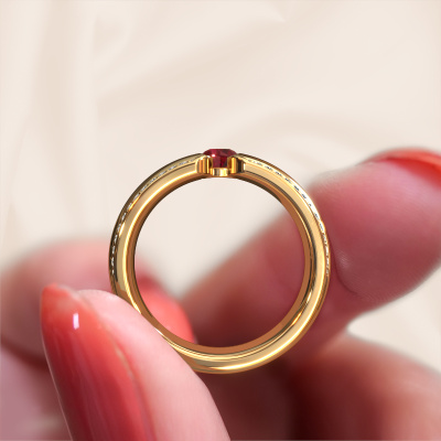 An extraordinary special ladies wedding ring! As unique as your relationship! No two people are alike and that is why you want a unique wedding ring. This luxury WHR0575L wedding ring is made by our jewel designers and crafted by hand by our goldsmith. In that process, We use pure craftsmanship combined with the latest techniques to achieve the best result. Our goldsmith strives for absolute perfection. A unique, handmade wedding ring, made to memorialize your big day! This luxury WHR0575L wedding ring is set with ruby, is ±0.28 in (7 mm) wide and has a shiny finish.