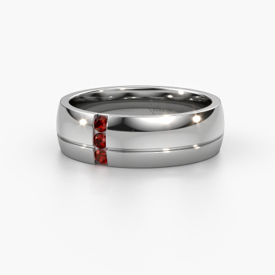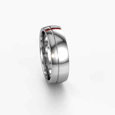 A unique two-tone platinum ladies wedding ring, designed by you, and then artfully crafted by our goldsmith in our own artisan studio! A beautiful symbol, reflecting your love, which you carry with you for a lifetime! Each ring we offer is artfully forged by hand in our own crafting studio. This makes it possible for us to create you a ring which is customized to your liking, completely shiny your style. This modern WH0223L56A wedding ring is set with garnet, is ±0.24 in (6 mm) wide and has a shiny finish. The jewel designer, member of a specialized team, will make a graphic 3D design of your wedding ring. If it pleases you, you can also order a ring dummy so you can try it on and see your ring before creation. Subsequently, our goldsmith will create your unique wedding ring with great care in our own crafting studio. A meticulous job, because both creating as well as finishing your ring requires a keen eye. And that is what makes our craft special. Your unique wedding ring is the result of true passionate craftsmanship!By the way, you can be inspired by this wedding ring and have it further adjusted to your taste. Do you prefer a smaller band or a wider one? Do you prefer a shiny ring or a matte one? Anything is possible. Also, if you have an idea of your own for extraordinary wedding rings, or if you have seen a beautiful set somewhere else that you really like and would like to have adjusted to your personal taste: no problem! don't hesitate to contact us. Our designers will gladly discuss your possibilities with you!After receiving your order, our goldsmiths will start the creative process of making your wedding rings. We don't keep stock. This is advantageous because these costs will not be passed on to you. Therefore, our quality wedding rings are always priced 30 percent lower than those of other jewelers.To make it easier for you, we offer a 30 day return policy. Check our terms and conditions.