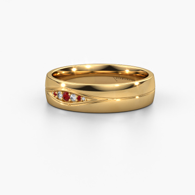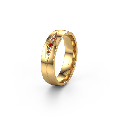 This modern ladies wedding ring is a stunning, contemporary wedding ring which truly symbolizes your unique love! Perfectly suited for men with a contemporary style. Simply customize the ring to your liking. Our goldsmith would take on any challenge of creating a perfect ring and will work on your ring, designed by you, in our own artisan studio. He will carefully and passionately create your WH0133L25AP ±5x1.7 mm wedding ring by hand whilst using the most modern techniques, combined with pure craftsmanship. And this results in a unique, contemporary ring! This modern WH0133L25AP wedding ring is set with round ruby is ±0.20 in (5 mm) wide and has a shiny finish. The jewel designer, member of a specialized team, will make a graphic 3D design of your wedding ring. If it pleases you, you can also order a ring dummy so you can try it on and see your ring before creation. Subsequently, our goldsmith will create your unique wedding ring with great care in our own crafting studio. A meticulous job, because both creating as well as finishing your ring requires a keen eye. And that is what makes our craft special. Your unique wedding ring is the result of true passionate craftsmanship!Be inspired by our designs, and adjust this wedding ring to your own personal taste: wider or smaller, shiny or matte? No problem! Even if you have ideas of your own for special wedding rings, our jewelry designers are lined up to help you design the ring of your dreams. don't hesitate to contact us!By combining our modern techniques with ancient crafting, we can design and customize the finest quality jewels with the utmost care for you at the best price. Our wedding rings are always priced 30% lower than those of other jewelers. We make wedding rings to order so we don't have to maintain a large stock.To make it easier for you, we offer a 30 day return policy. Check our terms and conditions.