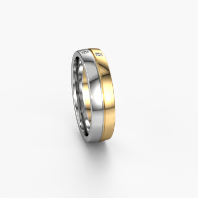 What a perfect combination of two different precious metals. They seem to reinforce each other in the modern design of this ring! Our goldsmith would be honored to create a unique ring for you, customized to your liking. Each ladies wedding ring we offer is artfully crafted by hand in our own artisan studio. That makes it possible for us to turn modern into reality and helps create your own personal ring, customized to your style. This modern WH0231L25BP ladies wedding ring is set with princess diamond, is ±0.20 in (5 mm) wide and has a shiny finish. After designing your ring, our jewel designer will start working on it. He will make a graphic 3D design of your wedding ring. This can also be used to make a dummy ring. Simply order a dummy ring and see for yourself how your ring will turn out. Subsequently, our expert goldsmith will create your ring in our own artisan studio. We use eco-friendly gold, so you get a ring, we are proud of, which looks good inside and out. You can also send us your own gold. Because we create your ring by hand, we can use your own gold. Our goal is to create an exquisite sparkling wedding ring just as envisioned it!Do you have special preferences regarding your wedding ring? For instance, a smaller or a wider band? Or perhaps a shiny or a matte ring? There are numerous variations possible. You can always discuss the possibilities with our jewelry designers. If you have certain wedding rings in mind, our designers will gladly help by drawing the rings of your dreams. Be sure to contact us!After receiving your order, our goldsmiths will start the creative process of making your wedding rings. We don't keep stock. This is advantageous because these costs will not be passed on to you. Therefore, our quality wedding rings are always priced 30 percent lower than those of other jewelers.To make it easier for you, we offer a 30 day return policy. Check our terms and conditions.