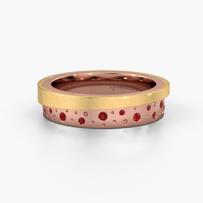 A unique ladies wedding ring, especially designed by our own jewel designers. An unusual ring that matches each style. This fantasy wedding ring WH6016L15E is made by hand by our goldsmiths in our own crafting studio. By using a combination of the most modern techniques and ancient craftsmanship, your WH6016L15E ring is created to perfection. This ladies wedding ring has an ±0.20 in (5 mm) width and has a shiny finish. Here, the fantasy rose gold wedding ring is shown in the combination rose gold with gold. An exquisite wedding ring, a celebration of your wedding day!Gold represents love and therefore our goldsmith loves using it in the design of your fantasy wedding ring. We are a proud member of the Responsible Jewellery Council. This means we only use eco-friendly gold. Something we take great pride in, obviously. It is also possible to use your own gold in the design of your wedding ring. Each jewel is made by hand in our own artisan studio so we can offer this option. This gives you the opportunity to add an extra personal touch to your ring. A ring with its own history!Do you have specific wishes? Like a shiny ring, or a matte one? A wider band, or a smaller one? The possibilities of this wedding ring are endless. Be sure to contact our designers to adjust your ring to your personal taste. Did you see a ring somewhere, or do you have some special ideas of your own? Then don't hesitate to contact our designers and discuss your ideas for your own set of beautiful wedding rings. We are up for the challenge of creating the ring exactly the way you want it!By combining our modern techniques with ancient crafting, we can design and customize the finest quality jewels with the utmost care for you at the best price. Our wedding rings are always priced 30% lower than those of other jewelers. We make wedding rings to order so we don't have to maintain a large stock.To make it easier for you, we offer a 30 day return policy. Check our terms and conditions.
