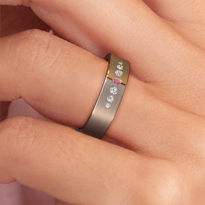 A unique ladies wedding ring, especially designed by our own jewel designers. An unusual ring that matches each style. This contemporary wedding ring WH1101L15SAM is made by hand by our goldsmiths in our own crafting studio. By using a combination of the most modern techniques and ancient craftsmanship, your WH1101L15SAM ring is created to perfection. This ladies wedding ring has an ±0.20 in (5 mm) width and has a shiny finish. Here, the contemporary gold wedding ring is shown in the combination gold with white gold. An exquisite wedding ring, a celebration of your wedding day!After ordering your wedding ring, our goldsmith will start creating your wedding ring immediately. Did you know we use the latest modern techniques, combined with ancient craftsmanship? This helps to create a 3D design of your jewel. You can order a dummy ring, if you please. This way you can check if the wedding ring meets your standard. Then, our goldsmith, who strives for perfection, will create your ring in our own artisan studio completely by hand. We feel passionate creating a unique ring each time. One which is finished to perfection. In the end, you get a wedding ring which matches your wishes.Do you have specific wishes? Like a shiny ring, or a matte one? A wider band, or a smaller one? The possibilities of this wedding ring are endless. Be sure to contact our designers to adjust your ring to your personal taste. Did you see a ring somewhere, or do you have some special ideas of your own? Then don't hesitate to contact our designers and discuss your ideas for your own set of beautiful wedding rings. We are up for the challenge of creating the ring exactly the way you want it!After receiving your order, our goldsmiths will start the creative process of making your wedding rings. We don't keep stock. This is advantageous because these costs will not be passed on to you. Therefore, our quality wedding rings are always priced 30 percent lower than those of other jewelers.To make it easier for you, we offer a 30 day return policy. Check our terms and conditions.
