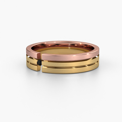 An extraordinary flat gold ladies wedding ring! The combination of the three different precious metals represents your unique love. Isn't that wonderful? Our goldsmith will create your ring in our own crafting studio. With a unique combination of pure craftsmanship of goldsmiths and the most modern techniques, we are able to customize your modern three tone wedding ring to perfection. This 3 color WH0402L15AM wedding ring set with round black diamond is ±0.20 in (5 mm) wide and has a matte finish. Simply customize your gemstones and colors with our online tool. Our jewel designers will make a 3D drawing of your design, so you can see the result. Our goldsmiths will subsequently make your wedding ring by hand, according ancient craftsmanship. Our goal is to make the wedding ring you have in mind. A unique wedding ring to match your style completely!This wedding ring can also serve as a source of inspiration. Would you like the ring to have a matte or shiny finish (at no additional cost), or would you prefer it to be wider or narrower? Anything is possible. Because there are countless variations, we can’t show everything on our website. Do you have an idea for beautiful wedding rings, or have you seen a stunning set of wedding rings elsewhere? Feel free to contact us; our designers are ready to assist you.Because we design our wedding rings ourselves, and deliver it directly to you, we can offer you wedding rings at a price you won't find anywhere else. Our rings are made to order, which helps prevent excess supplies, so we can make you a great price offer.To make it easier for you, we offer a 30 day return policy. Check our terms and conditions.