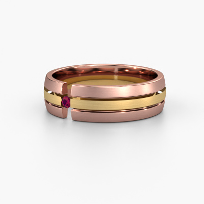 A truly stylish 14 Carat modern wedding ring! This exquisite ladies wedding ring, as shown above, is set with round rhodolite. Our goldsmiths make each gold wedding ring by hand in our own artisan studio and because of that, the rhodolite are set with the utmost precision. This causes light to reflect evenly from every angle of the rhodolite. The width of this modern WH0402L26AM wedding ring is ±0.24 in (6 mm) and the finish is mat. Choosing a wedding ring is not done on a whim. In the end, you want a ring that completely matches your style and preferences. A reflection of your love and relationship. A ring to last a lifetime. A symbol of all that unites you. Creating your dream ring is what gets us excited. This is artfully done by hand in our own crafting studio, so we can create your ring to perfection. The most rewarding job in the world!By the way, you can be inspired by this wedding ring and have it further adjusted to your taste. Do you prefer a smaller band or a wider one? Do you prefer a shiny ring or a matte one? Anything is possible. Also, if you have an idea of your own for extraordinary wedding rings, or if you have seen a beautiful set somewhere else that you really like and would like to have adjusted to your personal taste: no problem! don't hesitate to contact us. Our designers will gladly discuss your possibilities with you!After receiving your order, our goldsmiths will start the creative process of making your wedding rings. We don't keep stock. This is advantageous because these costs will not be passed on to you. Therefore, our quality wedding rings are always priced 30 percent lower than those of other jewelers.To make it easier for you, we offer a 30 day return policy. Check our terms and conditions.