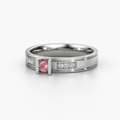 This modern ladies wedding ring is a stunning, contemporary wedding ring which truly symbolizes your unique love! Perfectly suited for men with a contemporary style. Simply customize the ring to your liking. Our goldsmith would take on any challenge of creating a perfect ring and will work on your ring, designed by you, in our own artisan studio. He will carefully and passionately create your WH2108L14A wedding ring by hand whilst using the most modern techniques, combined with pure craftsmanship. And this results in a unique, contemporary ring! This modern WH2108L14A wedding ring is set with round tourmaline pink, is ±0.16 in (4 mm) wide and has a shiny finish. You can choose the combination of precious metals of your preference in our online tool. Anything goes! It is wise to browse through the characteristics of each different precious metal. For example, gold and silver are softer metals. Carat is determined by the amount of added extra metals. If the goldsmith doesn't add a lot, carat is higher and the wedding ring will be softer. If he adds more metals, the jewel has a lower amount of carat. A softer precious metal can still be used for your modern wedding ring! If you prefer a precious metal which will last a lifetime, we recommend platinum. This is the most solid and durable metal our goldsmith uses.Be inspired by our designs, and adjust this wedding ring to your own personal taste: wider or smaller, shiny or matte? No problem! Even if you have ideas of your own for special wedding rings, our jewelry designers are lined up to help you design the ring of your dreams. don't hesitate to contact us!Because we design and deliver our own wedding rings, we can offer you wedding rings at a price you won't find anywhere else. A ring is made to order, which helps prevent excess supplies, so we can make you a great price offer.To make it easier for you, we offer a 30 day return policy. Check our terms and conditions.