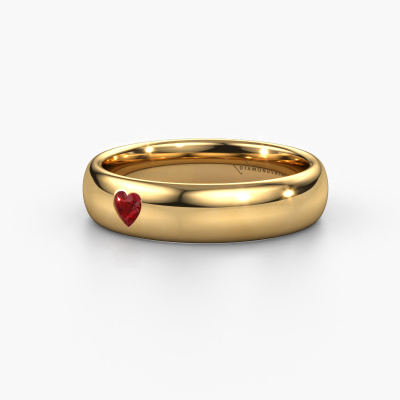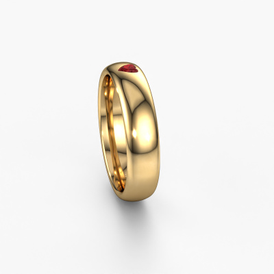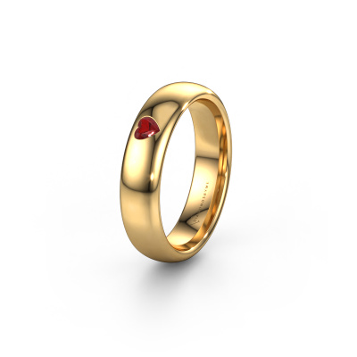 To create your ladies friendship ring in our artisan studio, we use the most modern techniques, combined with ancient craftsmanship. The end result is this trendy WH0101L35BPHRT friendship ring, which is crafted to perfection by hand by our goldsmiths. A ring that fills us with pride. This gold WH0101L35BPHRT ladies friendship ring with court profile has an ±0.20 in (5 mm) width and has a shiny finish with ruby. The jewel designer, member of a specialized team, will make a graphic 3D design of your friendship ring. If it pleases you, you can also order a ring dummy so you can try it on and see your ring before creation. Subsequently, our goldsmith will create your unique friendship ring with great care in our own crafting studio. A meticulous job, because both creating as well as finishing your ring requires a keen eye. And that is what makes our craft special. Your unique friendship ring is the result of true passionate craftsmanship!This friendship ring can also serve as a source of inspiration. Would you like the ring to have a matte or shiny finish (at no additional cost), or would you prefer it to be wider or narrower? Anything is possible. Because there are countless variations, we can’t show everything on our website. Do you have an idea for beautiful friendship rings, or have you seen a stunning set of wedding rings elsewhere? Feel free to contact us; our designers are ready to assist you.After receiving your order, our goldsmiths will passionately start the creative process of making your friendship rings in our own artisan studio. Because we do not maintain a large stockpile, we can offer our jewelry at a lower price than other jewelers. Our pricing is proof of that! We offer top quality jewels at lowest price, guaranteed.To make it easier for you, we offer a 30 day return policy. Check our terms and conditions.