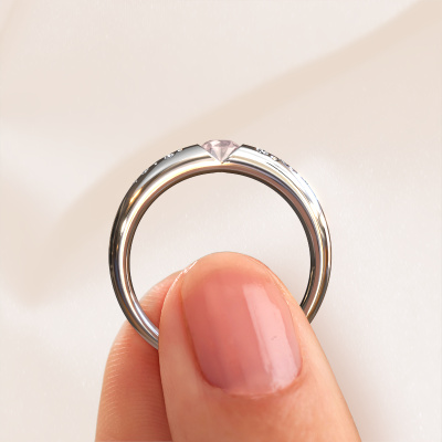 This modern ladies wedding ring is a melting pot of ancient craftsmanship, love, passion and the latest techniques. It requires a keen eye, patience and a skillful hand to create this platinum wedding ring to perfection. And perfection is what our goldsmiths strive for! This way, you create an exclusive ring, which is customized to your liking and made by hand in our own artisan studio. This modern WH2104L34A wedding ring is set with morganite champagne 4 mm, is ±0.18 in (4,5 mm) wide and has a shiny finish. Gold represents love and therefore our goldsmith loves using it in the design of your modern wedding ring. We are a proud member of the Responsible Jewellery Council. This means we only use eco-friendly gold. Something we take great pride in, obviously. It is also possible to use your own gold in the design of your wedding ring. Each jewel is made by hand in our own artisan studio so we can offer this option. This gives you the opportunity to add an extra personal touch to your ring. A ring with its own history!Do you have specific wishes? Like a shiny ring, or a matte one? A wider band, or a smaller one? The possibilities of this wedding ring are endless. Be sure to contact our designers to adjust your ring to your personal taste. Did you see a ring somewhere, or do you have some special ideas of your own? Then don't hesitate to contact our designers and discuss your ideas for your own set of beautiful wedding rings. We are up for the challenge of creating the ring exactly the way you want it!Because we design our wedding rings ourselves, and deliver it directly to you, we can offer you wedding rings at a price you won't find anywhere else. Our rings are made to order, which helps prevent excess supplies, so we can make you a great price offer.To make it easier for you, we offer a 30 day return policy. Check our terms and conditions.