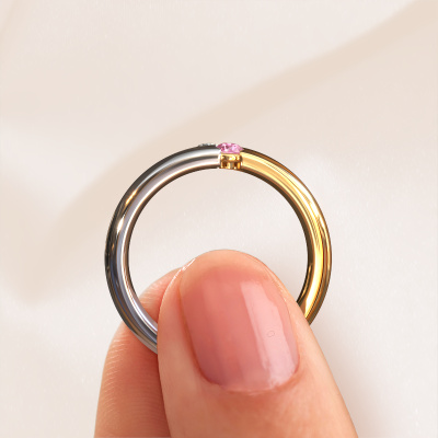 A unique two-tone gold ladies wedding ring, designed by you, and then artfully crafted by our goldsmith in our own artisan studio! A beautiful symbol, reflecting your love, which you carry with you for a lifetime! Each ring we offer is artfully forged by hand in our own crafting studio. This makes it possible for us to create you a ring which is customized to your liking, completely shiny your style. This modern WH1003L26C wedding ring is set with pink sapphire, is ±0.24 in (6 mm) wide and has a shiny finish. The jewel designer, member of a specialized team, will make a graphic 3D design of your wedding ring. If it pleases you, you can also order a ring dummy so you can try it on and see your ring before creation. Subsequently, our goldsmith will create your unique wedding ring with great care in our own crafting studio. A meticulous job, because both creating as well as finishing your ring requires a keen eye. And that is what makes our craft special. Your unique wedding ring is the result of true passionate craftsmanship!Be inspired by our designs, and adjust this wedding ring to your own personal taste: wider or smaller, shiny or matte? No problem! Even if you have ideas of your own for special wedding rings, our jewelry designers are lined up to help you design the ring of your dreams. don't hesitate to contact us!After receiving your order, our goldsmiths will start the creative process of making your wedding rings in our own crafting studio. We don't keep stock. This is advantageous because these costs will not be passed on to you. Therefore, we can offer the finest quality jewelry at exceptionally low prices.To make it easier for you, we offer a 30 day return policy. Check our terms and conditions.