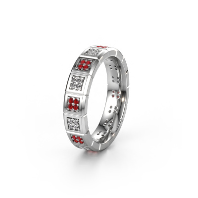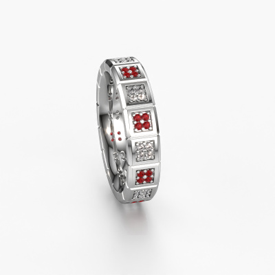 An extraordinary eternity ladies wedding ring! As unique as your relationship! No two people are alike and that is why you want a unique wedding ring. This exclusive WH2056L15DP wedding ring is made by our jewel designers and crafted by hand by our goldsmith. In that process, We use pure craftsmanship combined with the latest techniques to achieve the best result. Our goldsmith strives for absolute perfection. A unique, handmade wedding ring, made to memorialize your big day! This exclusive WH2056L15DP wedding ring is set with ruby, is ±0.20 in (5 mm) wide and has a shiny finish. Choosing a wedding ring is not done on a whim. In the end, you want a ring that completely matches your style and preferences. A reflection of your love and relationship. A ring to last a lifetime. A symbol of all that unites you. Creating your dream ring is what gets us excited. This is artfully done by hand in our own crafting studio, so we can create your ring to perfection. The most rewarding job in the world!Do you have specific wishes regarding your wedding ring, but are you having difficulties finding the design on our website? The be sure to contact our designers! For instance, we can make the band smaller or wider. Do you prefer a matte finish? We can do that! Engravings are a great way of personalizing your rings, and applicable on most designs. Or, if you have an idea of your own for your extraordinary wedding rings, contact us! Our designers are up for the challenge of designing the ring of your dreams!After receiving your order, our goldsmiths will passionately start the creative process of making your wedding rings in our own artisan studio. Because we do not maintain a large stockpile, we can offer our jewelry at a lower price than other jewelers. Our pricing is proof of that! We offer top quality jewels at lowest price, guaranteed.To make it easier for you, we offer a 30 day return policy. Check our terms and conditions.