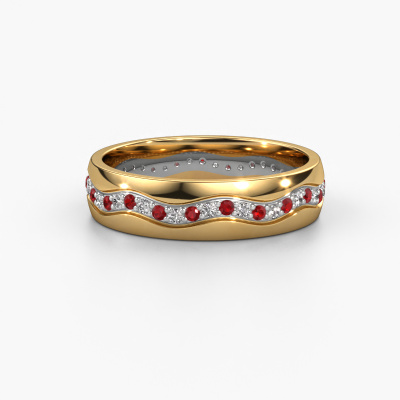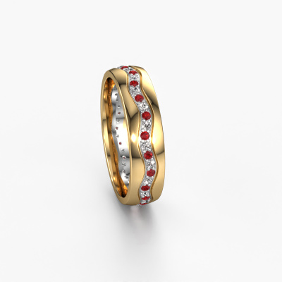 If you are looking for an exclusive, exclusive wedding ring with an exquisite look, this ring is perfect for you. Because it can be customized to your style, this wedding ring can be turned into a unique, exclusive piece of jewelry. This exclusive ladies wedding ring is a perfect combination of ancient craftsmanship, love, passion and the latest modern techniques. This exclusive WH0803L25AP wedding ring is set with ruby 1.3 mm, is ±0.20 in (5 mm) wide and has a shiny finish. You can choose the combination of precious metals of your preference in our online tool. Anything goes! It is wise to browse through the characteristics of each different precious metal. For example, gold and silver are softer metals. Carat is determined by the amount of added extra metals. If the goldsmith doesn't add a lot, carat is higher and the wedding ring will be softer. If he adds more metals, the jewel has a lower amount of carat. A softer precious metal can still be used for your exclusive wedding ring! If you prefer a precious metal which will last a lifetime, we recommend platinum. This is the most solid and durable metal our goldsmith uses.By the way, you can be inspired by this wedding ring and have it further adjusted to your taste. Do you prefer a smaller band or a wider one? Do you prefer a shiny ring or a matte one? Anything is possible. Also, if you have an idea of your own for extraordinary wedding rings, or if you have seen a beautiful set somewhere else that you really like and would like to have adjusted to your personal taste: no problem! don't hesitate to contact us. Our designers will gladly discuss your possibilities with you!By combining our modern techniques with ancient crafting, we can design and customize the finest quality jewels with the utmost care for you at the best price. Our wedding rings are always priced 30% lower than those of other jewelers. We make wedding rings to order so we don't have to maintain a large stock.To make it easier for you, we offer a 30 day return policy. Check our terms and conditions.