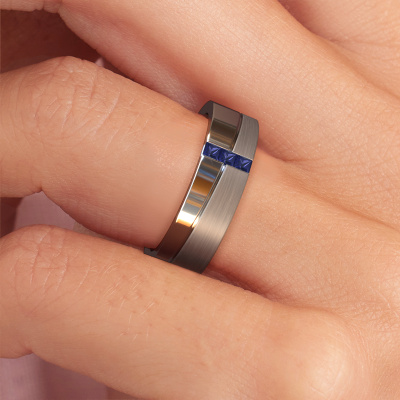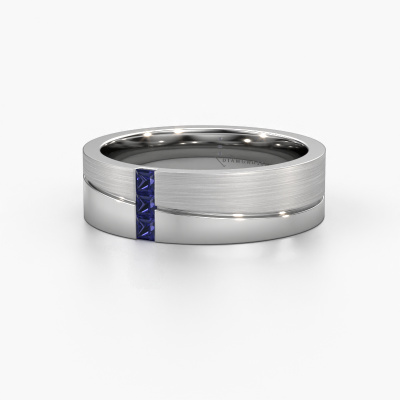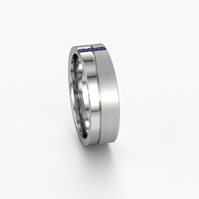 A unique two-tone platinum ladies wedding ring, designed by you, and then artfully crafted by our goldsmith in our own artisan studio! A beautiful symbol, reflecting your love, which you carry with you for a lifetime! Each ring we offer is artfully forged by hand in our own crafting studio. This makes it possible for us to create you a ring which is customized to your liking, completely mat/shiny your style. This modern WH0906L16A wedding ring is set with sapphire, is ±0.24 in (6 mm) wide and has a mat/shiny finish. You can choose the combination of precious metals of your preference in our online tool. Anything goes! It is wise to browse through the characteristics of each different precious metal. For example, gold and silver are softer metals. Carat is determined by the amount of added extra metals. If the goldsmith doesn't add a lot, carat is higher and the wedding ring will be softer. If he adds more metals, the jewel has a lower amount of carat. A softer precious metal can still be used for your modern wedding ring! If you prefer a precious metal which will last a lifetime, we recommend platinum. This is the most solid and durable metal our goldsmith uses.Do you have special preferences regarding your wedding ring? For instance, a smaller or a wider band? Or perhaps a shiny or a matte ring? There are numerous variations possible. You can always discuss the possibilities with our jewelry designers. If you have certain wedding rings in mind, our designers will gladly help by drawing the rings of your dreams. Be sure to contact us!After receiving your order, our goldsmiths will start the creative process of making your wedding rings. We don't keep stock. This is advantageous because these costs will not be passed on to you. Therefore, our quality wedding rings are always priced 30 percent lower than those of other jewelers.To make it easier for you, we offer a 30 day return policy. Check our terms and conditions.