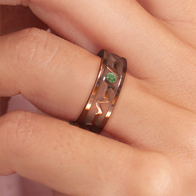 A unique wedding ring! The remarkable aspect of this ring is that you can have the heartbeat of your loved one engraved to it, expressing whom makes your heart beat faster. A beautiful engravement on a unique wedding ring. You can have part or the entire ring engraved. That is all up to you! Check our database at the bottom of this page for further instructions on how to send us your heartbeat. This unique for ladies Heartbeat 3 wedding ring has a width of ±0.24 in (6 mm). Simply customize your gemstones and colors with our online tool. Our jewel designers will make a 3D drawing of your design, so you can see the result. Our goldsmiths will subsequently make your wedding ring by hand, according ancient craftsmanship. Our goal is to make the wedding ring you have in mind. A unique wedding ring to match your style completely!Do you have special preferences regarding your wedding ring? For instance, a smaller or a wider band? Or perhaps a shiny or a matte ring? There are numerous variations possible. You can always discuss the possibilities with our jewelry designers. If you have certain wedding rings in mind, our designers will gladly help by drawing the rings of your dreams. Be sure to contact us!After receiving your order, our goldsmiths will start the creative process of making your wedding rings. We don't keep stock. This is advantageous because these costs will not be passed on to you. Therefore, our quality wedding rings are always priced 30 percent lower than those of other jewelers.To make it easier for you, we offer a 30 day return policy. Check our terms and conditions.