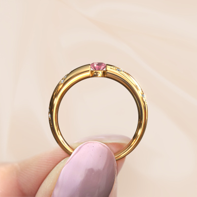 This exclusive ladies wedding ring is a melting pot of ancient craftsmanship, love, passion and the latest techniques. It requires a keen eye, patience and a skillful hand to create this gold wedding ring to perfection. And perfection is what our goldsmiths strive for! This way, you create an exclusive ring, which is customized to your liking and made by hand in our own artisan studio. This exclusive WH2102L34A wedding ring is set with tourmaline pink 4 mm, is ±0.20 in (5 mm) wide and has a shiny finish.
