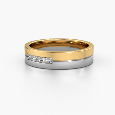 What a perfect combination of two different precious metals. They seem to reinforce each other in the modern design of this ring! Our goldsmith would be honored to create a unique ring for you, customized to your liking. Each ladies wedding ring we offer is artfully crafted by hand in our own artisan studio. That makes it possible for us to turn modern into reality and helps create your own personal ring, customized to your style. This modern WH0211L15AP ladies wedding ring is set with round zirconia, is ±0.20 in (5 mm) wide and has a shiny finish. Choosing a wedding ring is not done on a whim. In the end, you want a ring that completely matches your style and preferences. A reflection of your love and relationship. A ring to last a lifetime. A symbol of all that unites you. Creating your dream ring is what gets us excited. This is artfully done by hand in our own crafting studio, so we can create your ring to perfection. The most rewarding job in the world!Do you have special preferences regarding your wedding ring? For instance, a smaller or a wider band? Or perhaps a shiny or a matte ring? There are numerous variations possible. You can always discuss the possibilities with our jewelry designers. If you have certain wedding rings in mind, our designers will gladly help by drawing the rings of your dreams. Be sure to contact us!After receiving your order, our goldsmiths will start the creative process of making your wedding rings in our own crafting studio. We don't keep stock. This is advantageous because these costs will not be passed on to you. Therefore, we can offer the finest quality jewelry at exceptionally low prices.To make it easier for you, we offer a 30 day return policy. Check our terms and conditions.