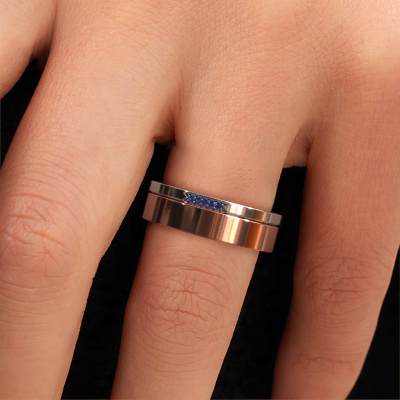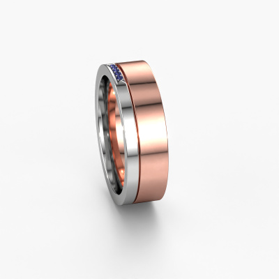 What a perfect combination of two different precious metals. They seem to reinforce each other in the modern design of this ring! Our goldsmith would be honored to create a unique ring for you, customized to your liking. Each ladies weddings ring we offer is artfully crafted by hand in our own artisan studio. That makes it possible for us to turn modern into reality and helps create your own personal ring, customized to your style. This modern WH0336L16A ladies weddings ring is set with round sapphire, is ±0.24 in (6 mm) wide and has a shiny finish. Gold represents love and therefore our goldsmith loves using it in the design of your modern weddings ring. We are a proud member of the Responsible Jewellery Council. This means we only use eco-friendly gold. Something we take great pride in, obviously. It is also possible to use your own gold in the design of your weddings ring. Each jewel is made by hand in our own artisan studio so we can offer this option. This gives you the opportunity to add an extra personal touch to your ring. A ring with its own history!By the way, you can be inspired by this weddings ring and have it further adjusted to your taste. Do you prefer a smaller band or a wider one? Do you prefer a shiny ring or a matte one? Anything is possible. Also, if you have an idea of your own for extraordinary wedding rings, or if you have seen a beautiful set somewhere else that you really like and would like to have adjusted to your personal taste: no problem! don't hesitate to contact us. Our designers will gladly discuss your possibilities with you!After receiving your order, our goldsmiths will passionately start the creative process of making your wedding rings in our own artisan studio. Because we do not maintain a large stockpile, we can offer our jewelry at a lower price than other jewelers. Our pricing is proof of that! We offer top quality jewels at lowest price, guaranteed.To make it easier for you, we offer a 30 day return policy. Check our terms and conditions.