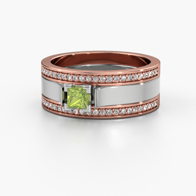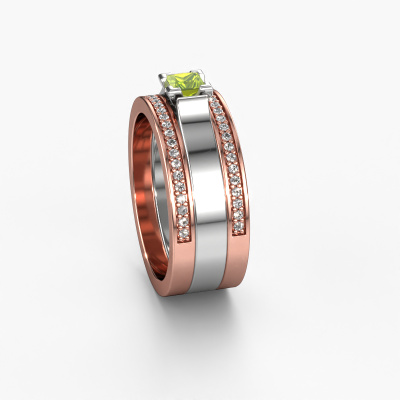 A truly stylish 14 Carat exclusive wedding ring! This exquisite ladies wedding ring, as shown above, is set with princess peridot. Our goldsmiths make each rose gold wedding ring by hand in our own artisan studio and because of that, the peridot are set with the utmost precision. This causes light to reflect evenly from every angle of the peridot. The width of this exclusive WH2121L wedding ring is ±0.31 in (8 mm) and the finish is shiny. Choosing a wedding ring is not done on a whim. In the end, you want a ring that completely matches your style and preferences. A reflection of your love and relationship. A ring to last a lifetime. A symbol of all that unites you. Creating your dream ring is what gets us excited. This is artfully done by hand in our own crafting studio, so we can create your ring to perfection. The most rewarding job in the world!Do you have specific wishes? Like a shiny ring, or a matte one? A wider band, or a smaller one? The possibilities of this wedding ring are endless. Be sure to contact our designers to adjust your ring to your personal taste. Did you see a ring somewhere, or do you have some special ideas of your own? Then don't hesitate to contact our designers and discuss your ideas for your own set of beautiful wedding rings. We are up for the challenge of creating the ring exactly the way you want it!After receiving your order, our goldsmiths will start the creative process of making your wedding rings in our own crafting studio. We don't keep stock. This is advantageous because these costs will not be passed on to you. Therefore, we can offer the finest quality jewelry at exceptionally low prices.To make it easier for you, we offer a 30 day return policy. Check our terms and conditions.