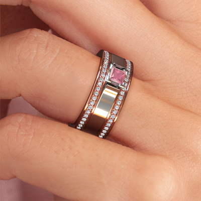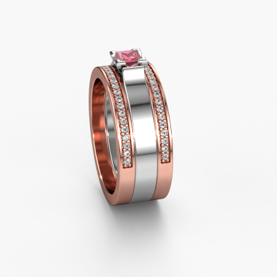 A truly stylish 14 Carat exclusive wedding ring! This exquisite ladies wedding ring, as shown above, is set with princess tourmaline pink. Our goldsmiths make each rose gold wedding ring by hand in our own artisan studio and because of that, the tourmaline pink are set with the utmost precision. This causes light to reflect evenly from every angle of the tourmaline pink. The width of this exclusive WH2121L wedding ring is ±0.31 in (8 mm) and the finish is shiny. Choosing a wedding ring is not done on a whim. In the end, you want a ring that completely matches your style and preferences. A reflection of your love and relationship. A ring to last a lifetime. A symbol of all that unites you. Creating your dream ring is what gets us excited. This is artfully done by hand in our own crafting studio, so we can create your ring to perfection. The most rewarding job in the world!Do you have specific wishes? Like a shiny ring, or a matte one? A wider band, or a smaller one? The possibilities of this wedding ring are endless. Be sure to contact our designers to adjust your ring to your personal taste. Did you see a ring somewhere, or do you have some special ideas of your own? Then don't hesitate to contact our designers and discuss your ideas for your own set of beautiful wedding rings. We are up for the challenge of creating the ring exactly the way you want it!After receiving your order, our goldsmiths will start the creative process of making your wedding rings in our own crafting studio. We don't keep stock. This is advantageous because these costs will not be passed on to you. Therefore, we can offer the finest quality jewelry at exceptionally low prices.To make it easier for you, we offer a 30 day return policy. Check our terms and conditions.